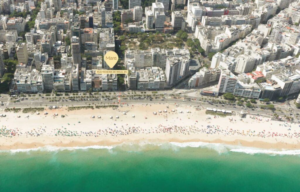 A localização do MAre Ipanema é inquestionavelmente o pilar central desta oportunidade. Afinal, Ipanema é um bairro com valor histórico e cultural que se traduz em valorização imobiliária constante. O empreendimento está posicionado em uma área nobre, a poucos metros da praia e próximo a todo o comércio de luxo e gastronomia de ponta.